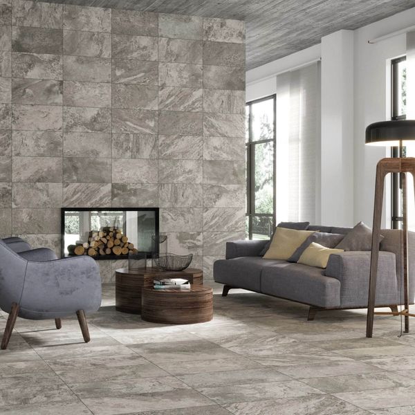 Industrial-grade, large-format porcelain with rectified edges. Durable, low-maintenance
