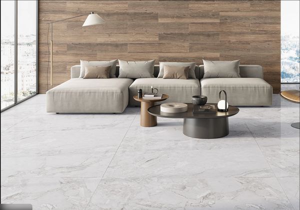 Marble-effect porcelain with refined veining and Green‑Square certification—ideal for high-end interior projects.